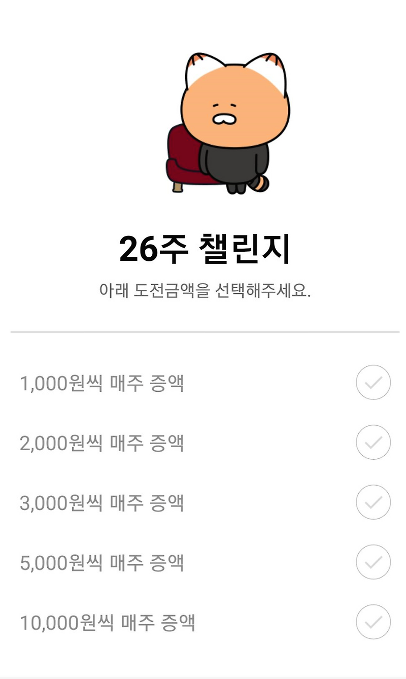 단돈 1,000원으로 시작해서 1년만에 1,000만원 쌓이는 시스템 만들기! 카카오뱅크 26주 적금 카카오뱅크에서 26주 적금이 나온 지 시간이 꽤 흘렀습니다. 카카오 26주 적금은 카카오뱅크 자유적금의 변형이라서 먼저 카카오뱅크 자유적금에 관한 설명, 카카오뱅크 적금 풍차돌리기 등 활용법등을 추천드렸습니다. #26주적금 #카카오뱅크26주적금 #버거움#그래도 #잘하고있어#군포시 #산본맘 #아들둘맘#이번주. 제가 지금까지 가장 오래 낸 적금은 3년이나. Näe twiittejä aiheesta #카카오뱅크26주챌린지 twitterissä. 21 отметок «нравится», 0 комментариев — 문성희 (@sunghee_moon) в instagram: 1000원부터 시작해서 30만원 넘는 통장만들기 3. .적금 가입만 해도 한정판 카카오프렌즈 장바구니 증정 ※기간 내 카카오뱅크 26주적금 with 이마트 가입 고객 대상 추첨 (6만명 한정) ⠀ 26주 동안 저금하면 최대 6만 8천원 이마트 할인 쿠폰 증정 ⠀ 할인쿠폰 사용할수록 최대 2만원 추가 캐시백 ⠀ ※26주적금은 카카오뱅크 자유적금의. 23일에는 카카오뱅크 체크카드로 1만원 이상 결제한 고객에게 추첨을 통해 영화 티켓을 증정한다. 26주 적금을 이마트 제휴 특별 캐릭터를 선택해서 가입할 수 있습니다. '26주 적금'을 세 번째 가입해 저축 중이라는 경찰공무원 강모(26) 씨는 소액에 단기 적금이라 돌아오는 이자는 몇 푼 안 된다. 이 적금은 카카오뱅크 26주 적금에 마켓컬리에서 사용할 수 있는 할인 쿠폰 혜택을 더한 상품이다.